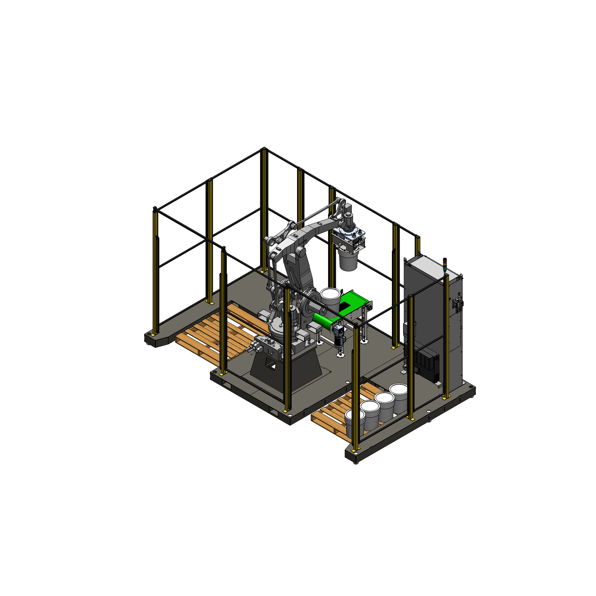 - Throughput: 5 – 6 cycles/min (depending on pallet pattern and pail stability)