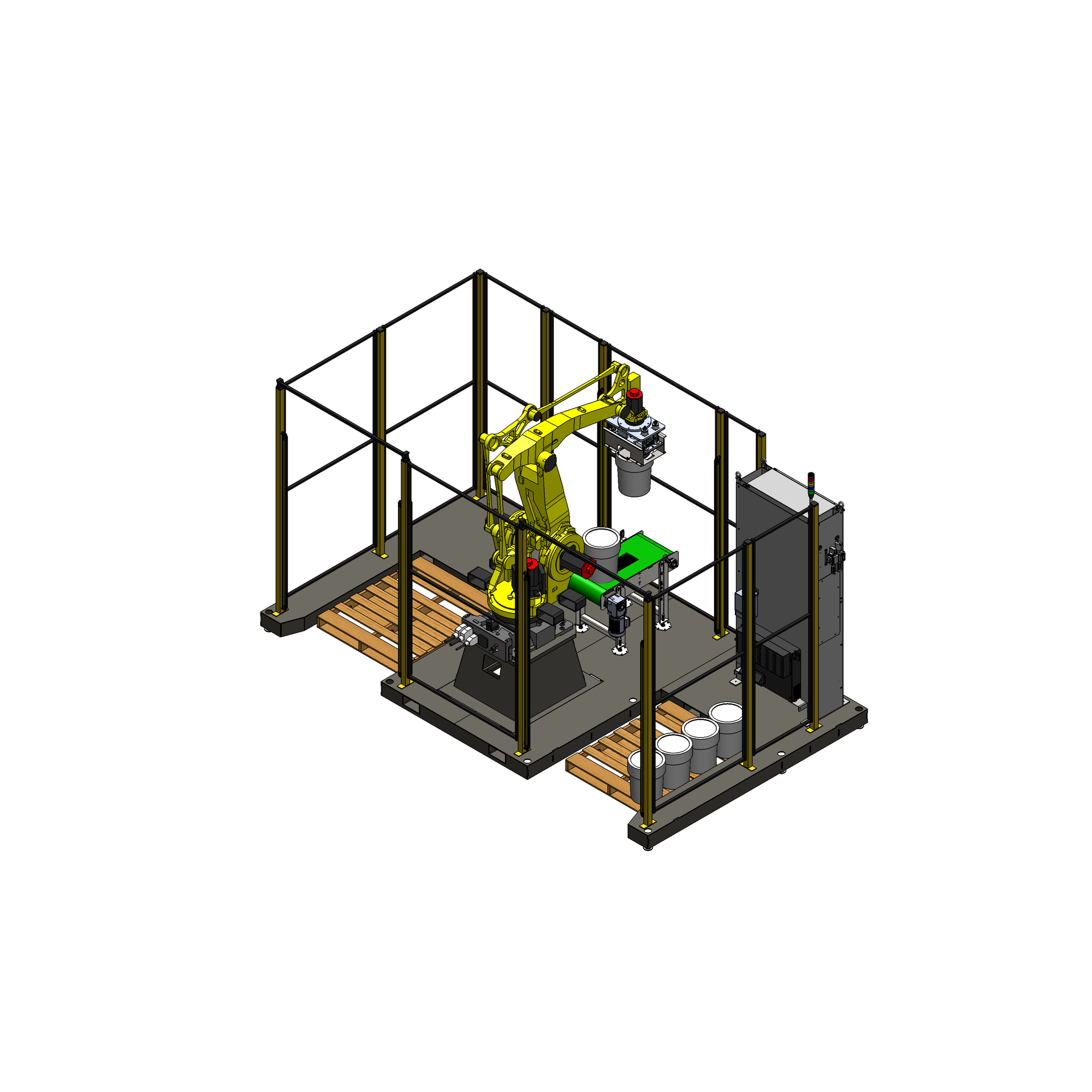 - Purpose-built robotic palletizer for Pails and Buckets